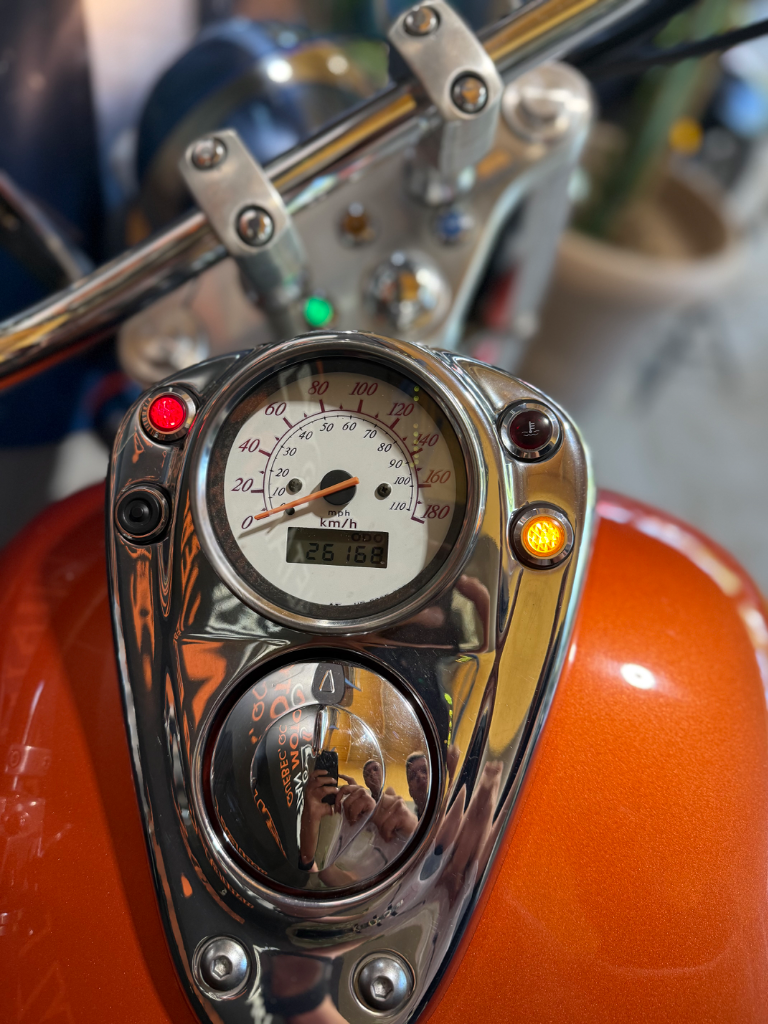 Honda Shadow Aero 750 200426 153 km – Très propre – Couleur orangeMoto fiable, au style classique avec une touche unique.Moteur V-Twin 750 cc, conduite souple et agréable, idéale pour les amateurs de cruising.Inspection mécanique complèteGARANTIE disponibles