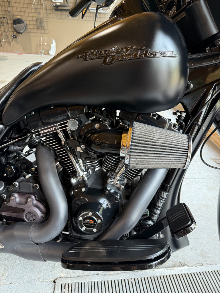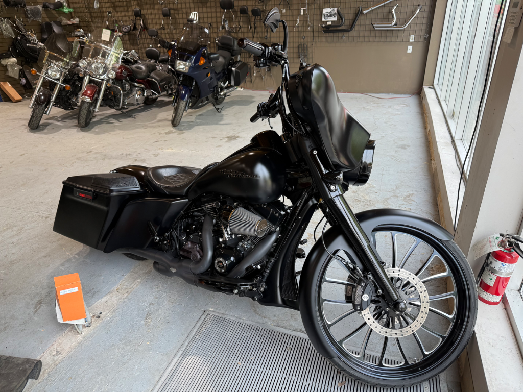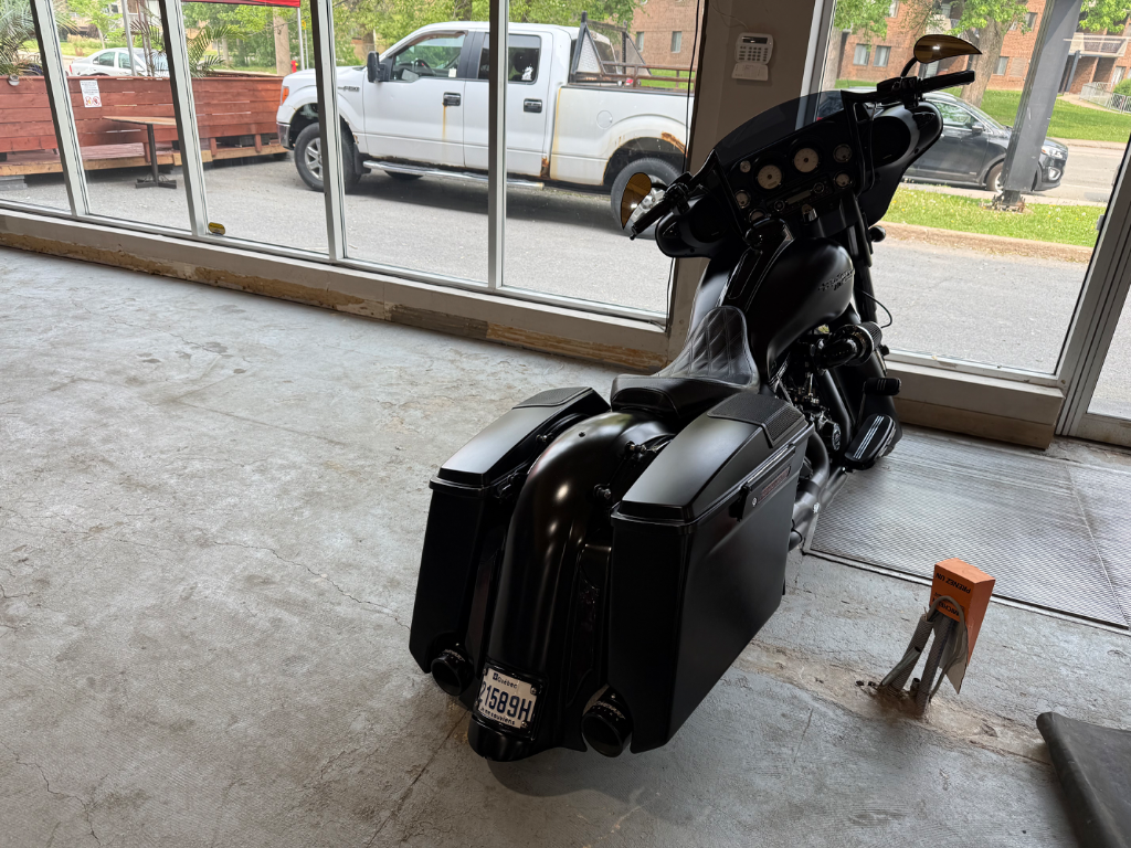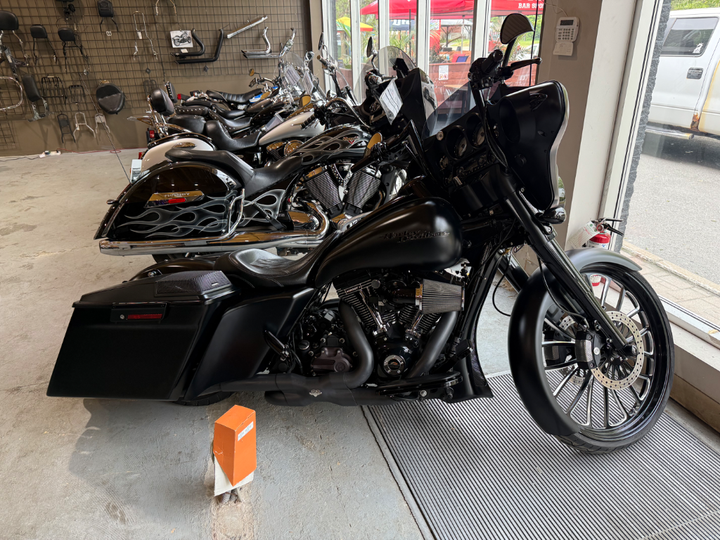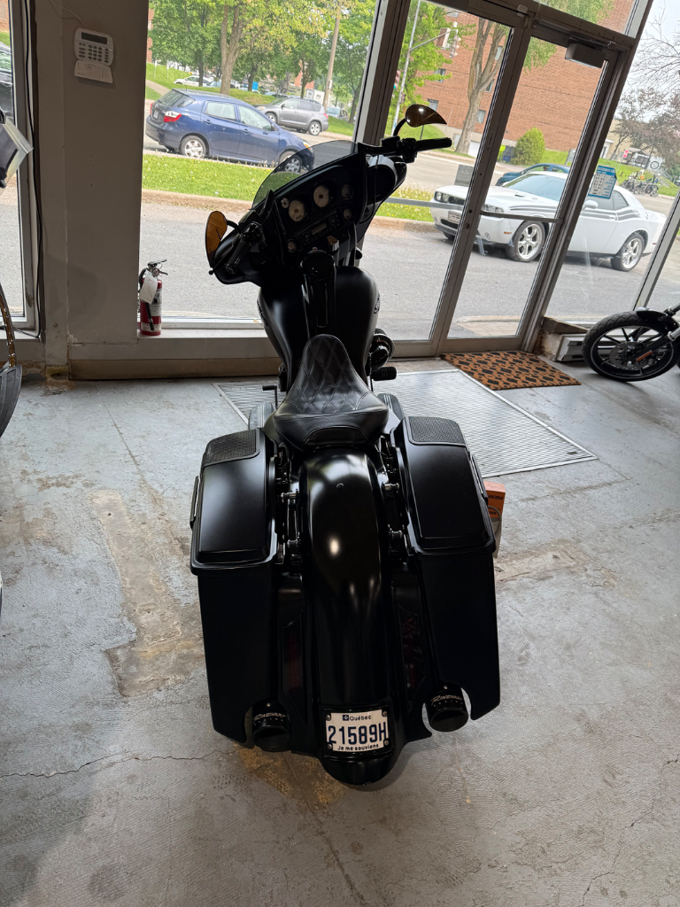 Harley-Davidson Street Glide 2013 – Entièrement modifiéePlus de 60 000 $ en modifications sur cette machine unique: Fourche avant custom Suspension à l’air ajustable en hauteur Échappement Rinehart Racing Moteur 120 ci Screamin’ Eagle Système audio Jensen Bluetooth Seulement 28 411 km Finition noire mate impeccable Un style bagger distinctif, une sonorité impressionnante et des performances haut de gamme. Une moto prête à faire tourner les têtes et à offrir une expérience de conduite incomparable.